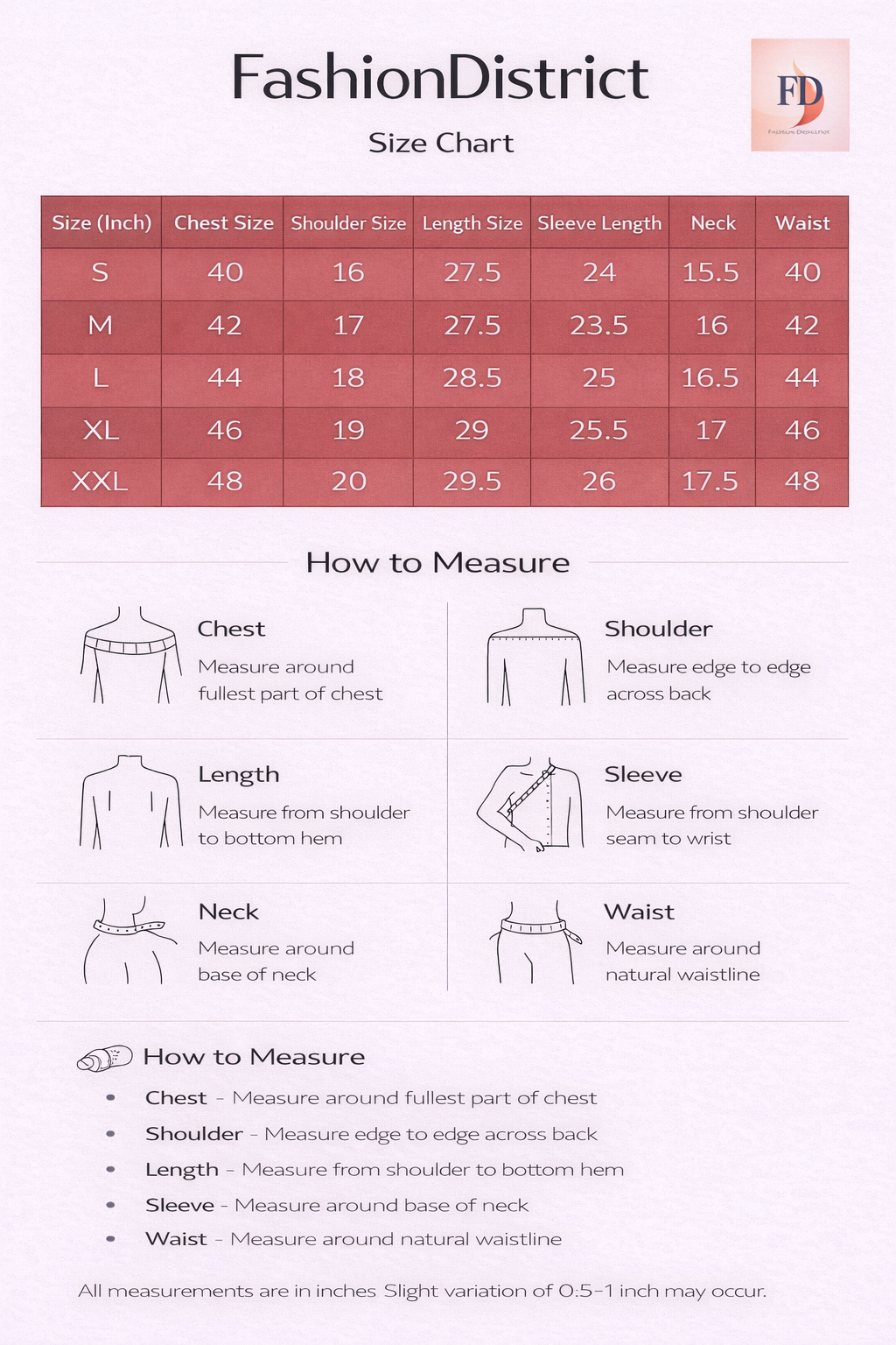S, M, L, XL, 2XL